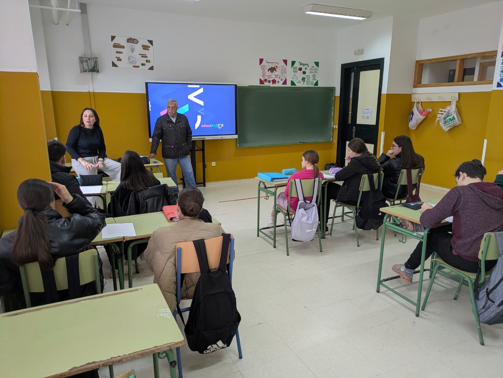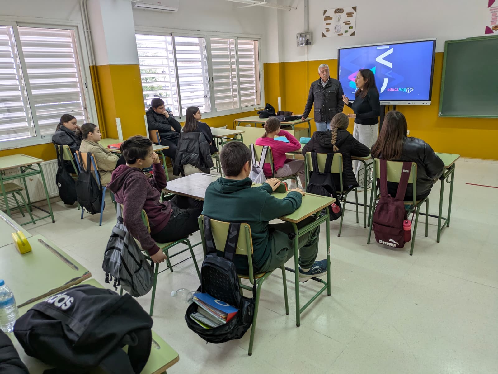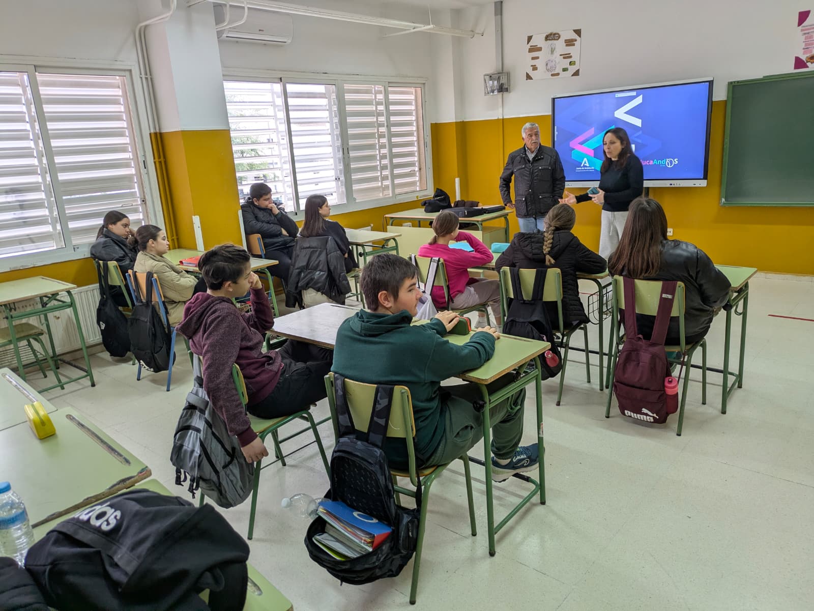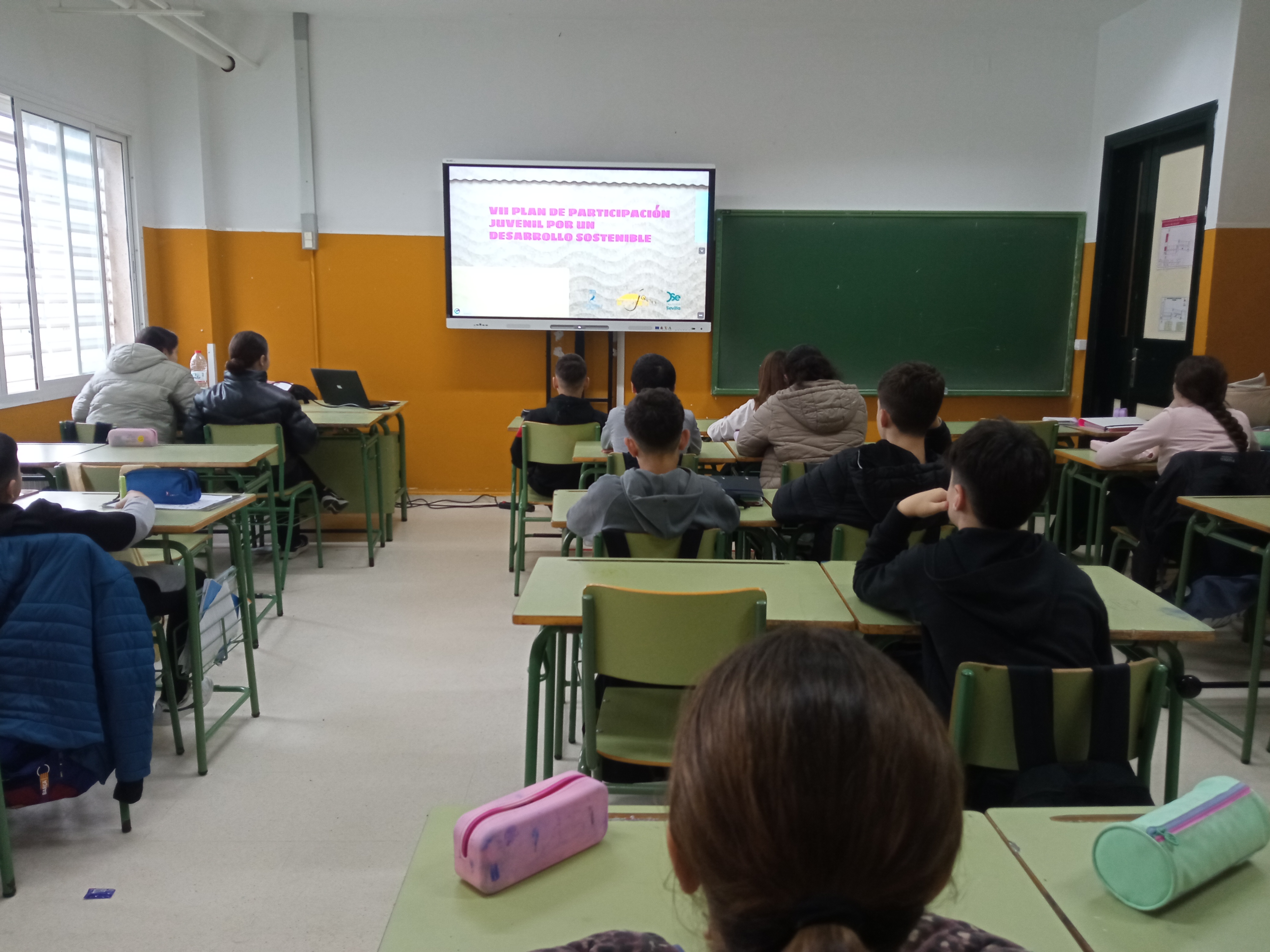 Las actuaciones comenzaron con sesiones formativas en el aula centradas en la importancia de la implicación activa de la juventud en los ámbitos social, económico y medioambiental, considerados pilares fundamentales del desarrollo sostenible. Entre las iniciativas destacadas, se llevó a cabo un enriquecedor taller intergeneracional dirigido al alumnado de 3º de ESO, que contó con la participación voluntaria del vecino Juan Bellido Calvo. A través de su testimonio, el alumnado pudo conocer de primera mano cómo eran los hábitos de consumo y la gestión de residuos en décadas anteriores, estableciendo un interesante contraste con el modelo de vida actual. La actividad resultó especialmente motivadora y favoreció la reflexión crítica sobre los patrones de consumo y su impacto en el entorno.