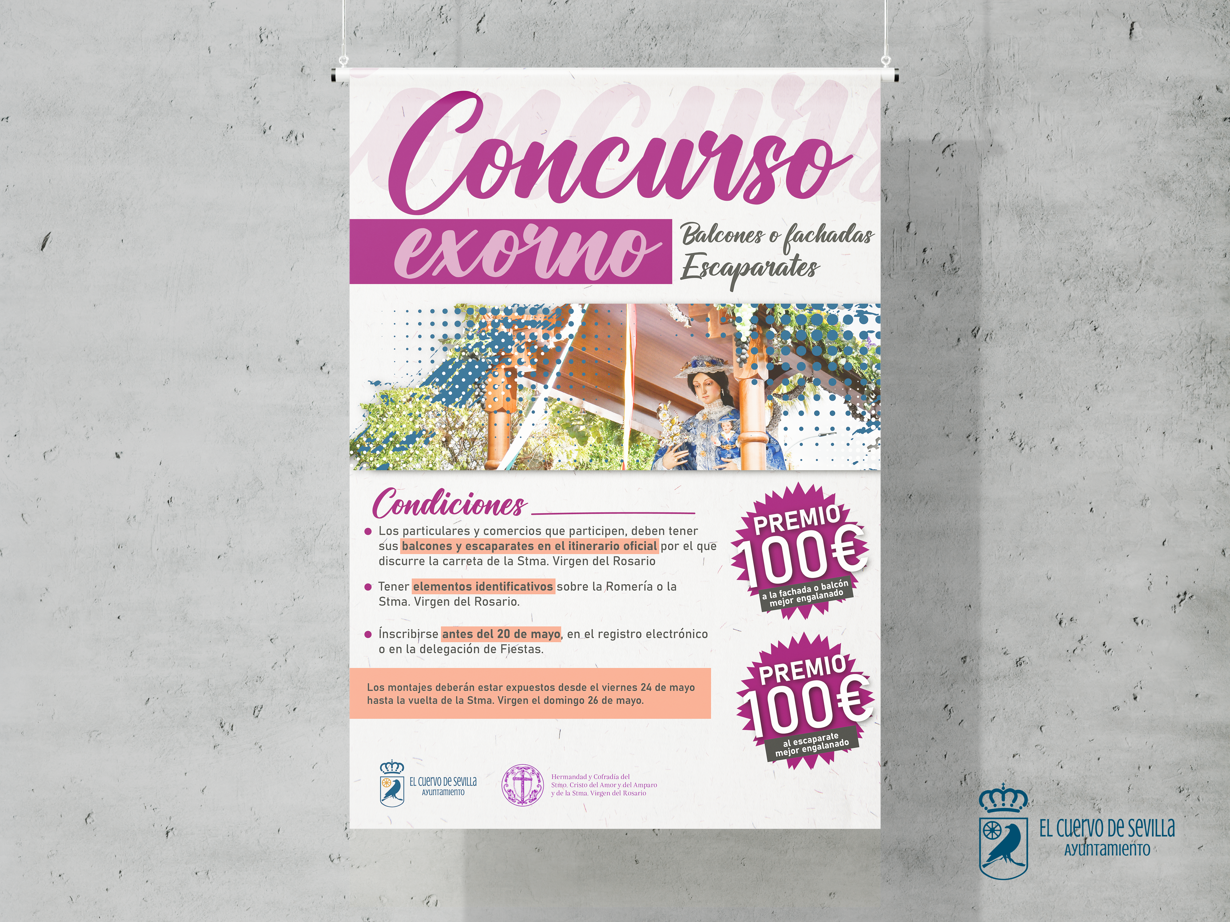 Este año, desde la delegación de Fiestas, se va a impulsar un concurso para el exorno de escaparates de los comercios, y de las fachadas y balcones de todos aquellos establecimientos comerciales y/o viviendas por las calles por las que discurre la carreta de la Stma. Virgen del Rosario. Castells se ha referido al tramo comprendido entre la Nacional IV desde la calle Olvera hasta la calle Fernando Cámara, y esta última vía en su totalidad.