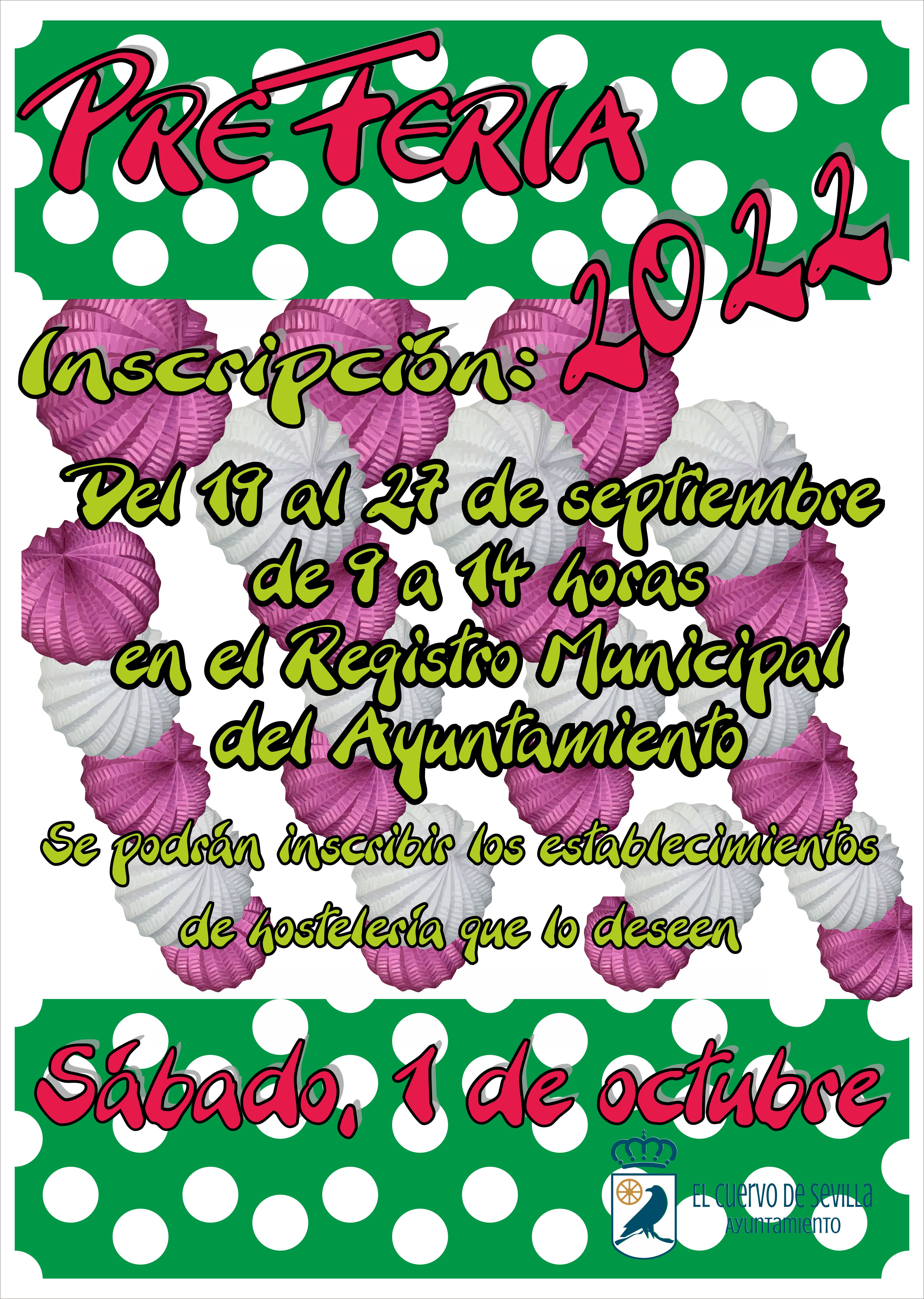 Primero.- La “Preferia” se celebrará en nuestra localidad el sábado, día 1 de octubre previa solicitud de autorización a este ayuntamiento por parte de los establecimientos de hostelería interesados en celebrarlas, que deberán presentarse en el Registro del Ayuntamiento del 19 al 27 de septiembre en horario de 9 a 14 horas.