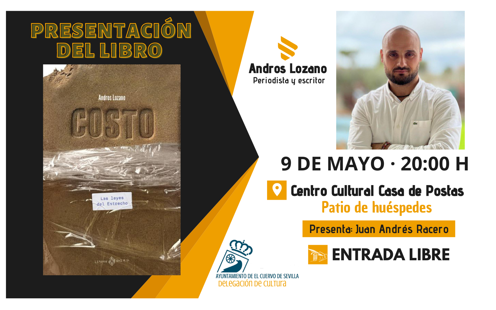 La Delegación de Cultura organiza el martes 9 de mayo la presentación del libro 'Costo', del periodista y escritor Andros Lozano. Esta obra narra la historia trepidante sobre el narcotráfico en Andalucía, Ceuta y Melilla.