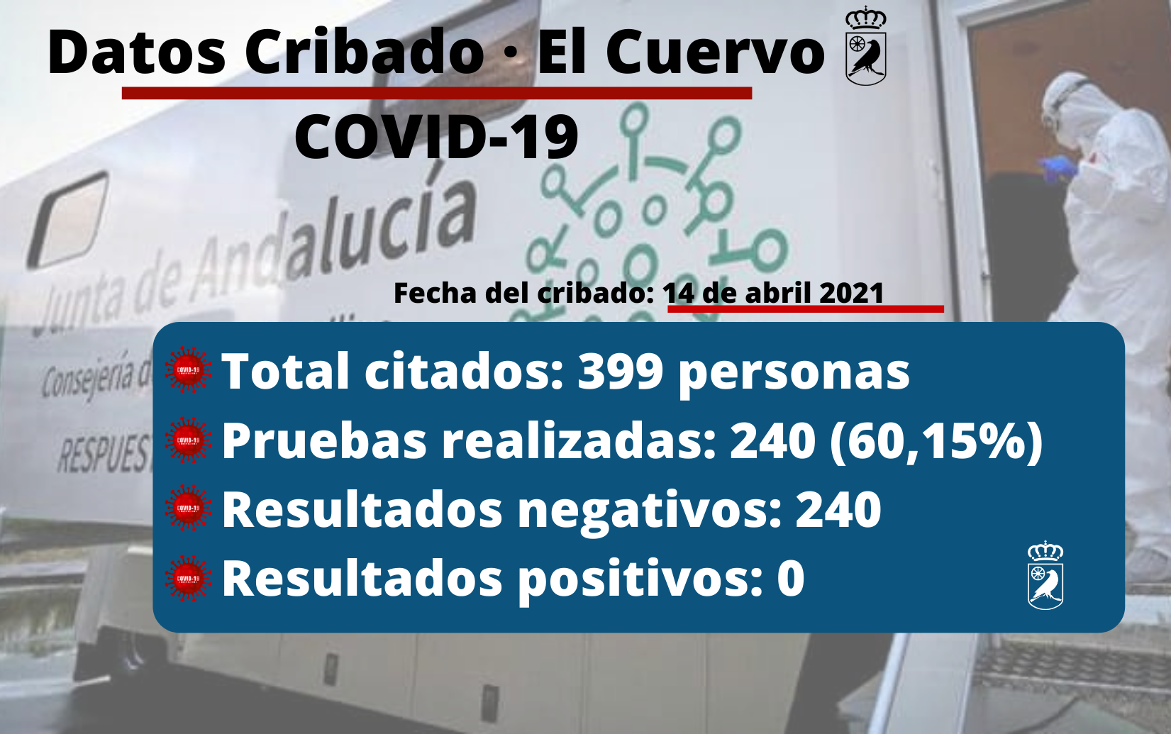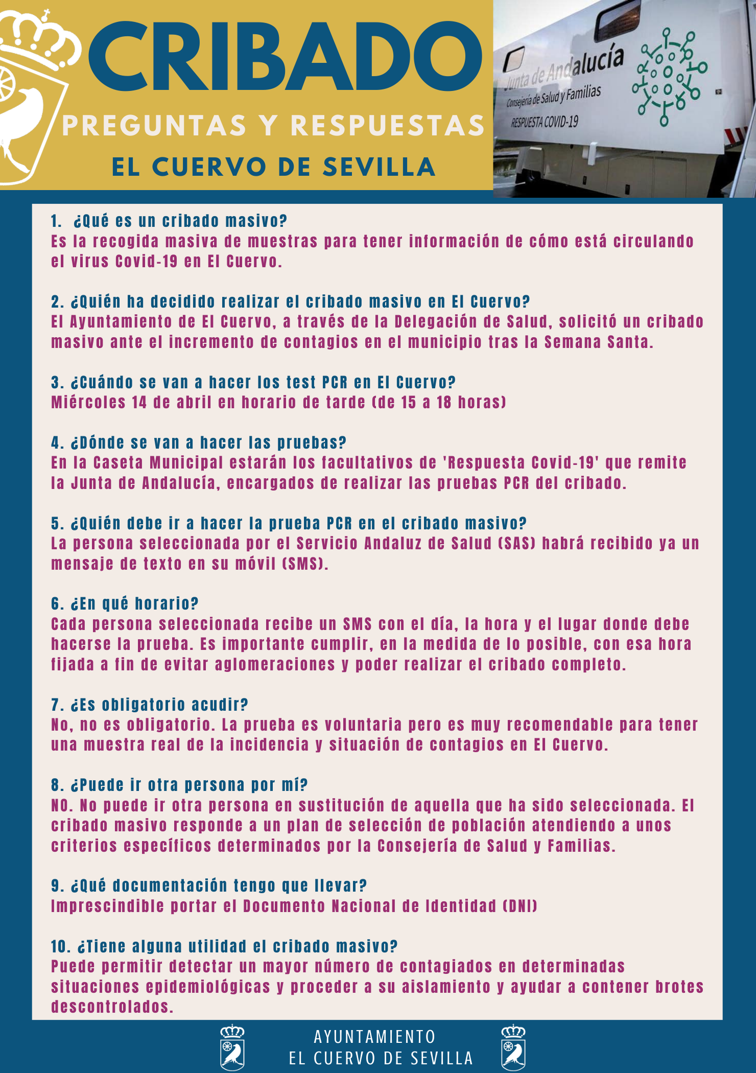 Cribado masivo en El Cuervo el miércoles 14 de abril