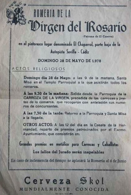 Como elemento anecdótico observamos que en el cartel del año 1993 no aparece el escudo del Ayuntamiento, ya que fue la primera Romería que celebró el municipio siendo independiente de la vecina Lebrija. Este cartel además se realizó haciendo fotocopias en color y no en imprenta.